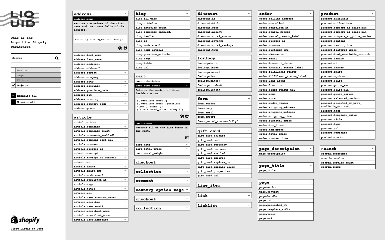 Liquid Cheatsheet, Shopify